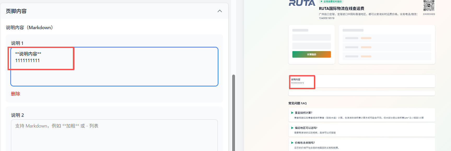 说明内容 加了** ** ,字体会呈现加粗的状态。